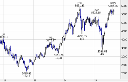 昨年7月の最高値を今回先週ギリギリの所で越えずに、